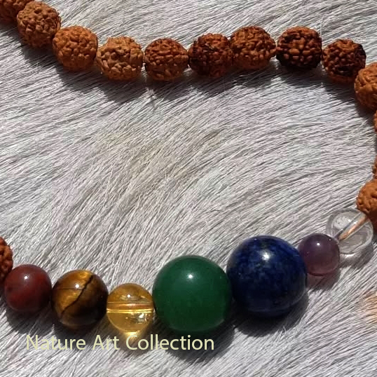 گردنبند مالا رودراکشا با دانه های هسته رودراکشا و سنگ ای طبیعی معدنی مناسب خانم ها و اقایان با طول حدود 45 تا 55 با هدف بهبود سلامت جسم و جان طراحی و اجرا شده است .