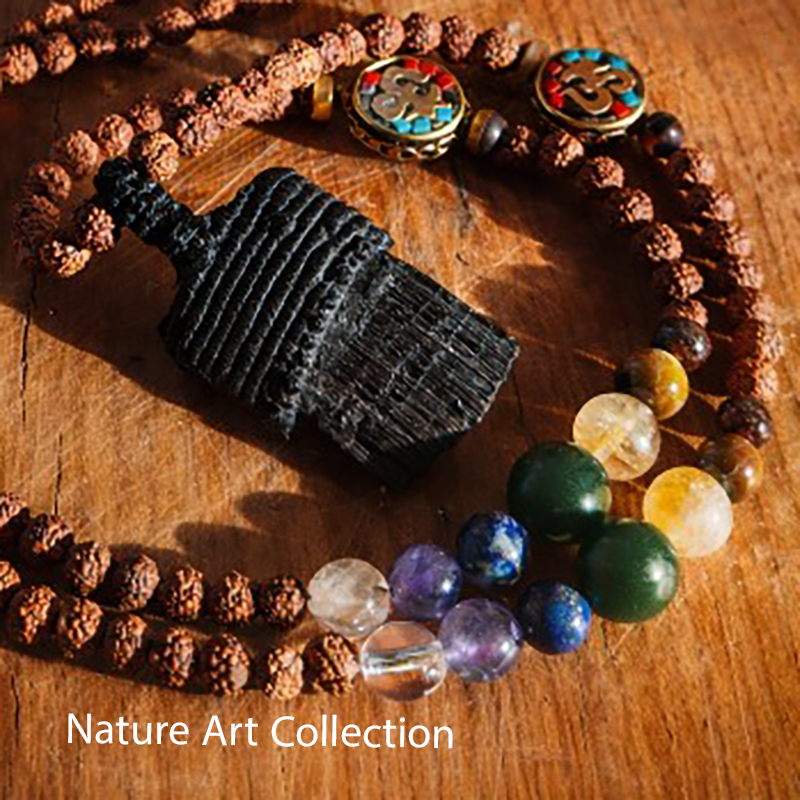 یک گردنبند با اویز سنگ معدنی تورمالین سیاه که با بافت مکرمه دست بافت مزین شده است. بند این گردنبند از مهر های هسته رودراکشا و سنگ های انرژی :گارنت سرخ/چشم ببر/سیتری/یشم/لاجورد/امیتست/کریستال کوارتز و دو مهره دستساز برنجی تبتی طراحی و اجرا شده است .طول این گردنبند تا روی سینه قرار میگرد. کار به صورت دستساز است و از زمان سفارش شما 10روز کاری زمن میبرد. در ساخت کارها از بهترین متریال استفاده می شود .